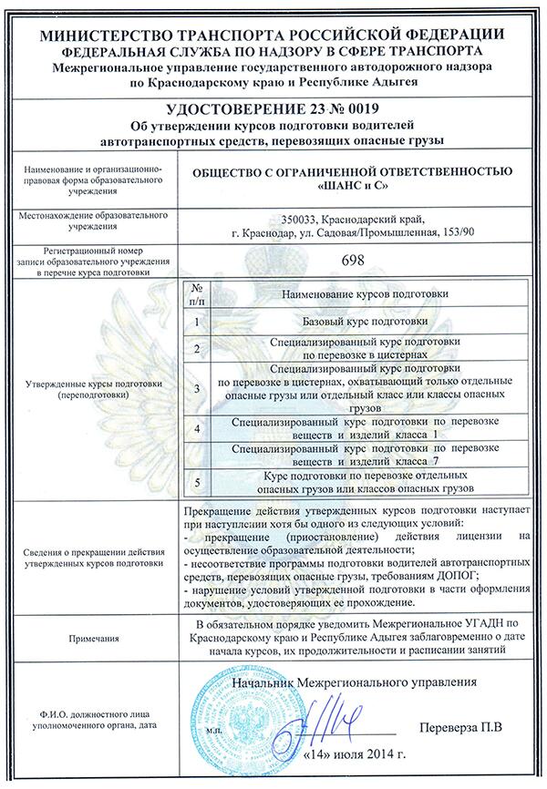 отправить нам письмо с указанием ваших личных данных и категории опасных грузов, которые вы планируете перевозить;